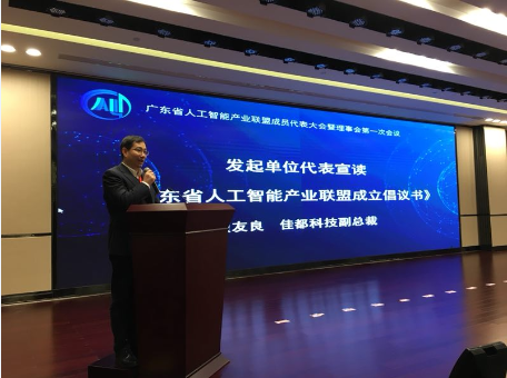 米兰milan科技副总裁顾友良作为发起单位代表宣读《广东省人工智能产业联盟成立倡仪书》