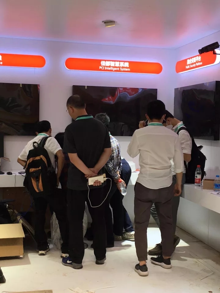 佳都的技术小哥们正在紧张地安装和调试设备,保证明天的展示万无一失