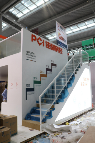 展台后方别有洞天,设有二楼VIP洽谈区,期待它的完美变身。